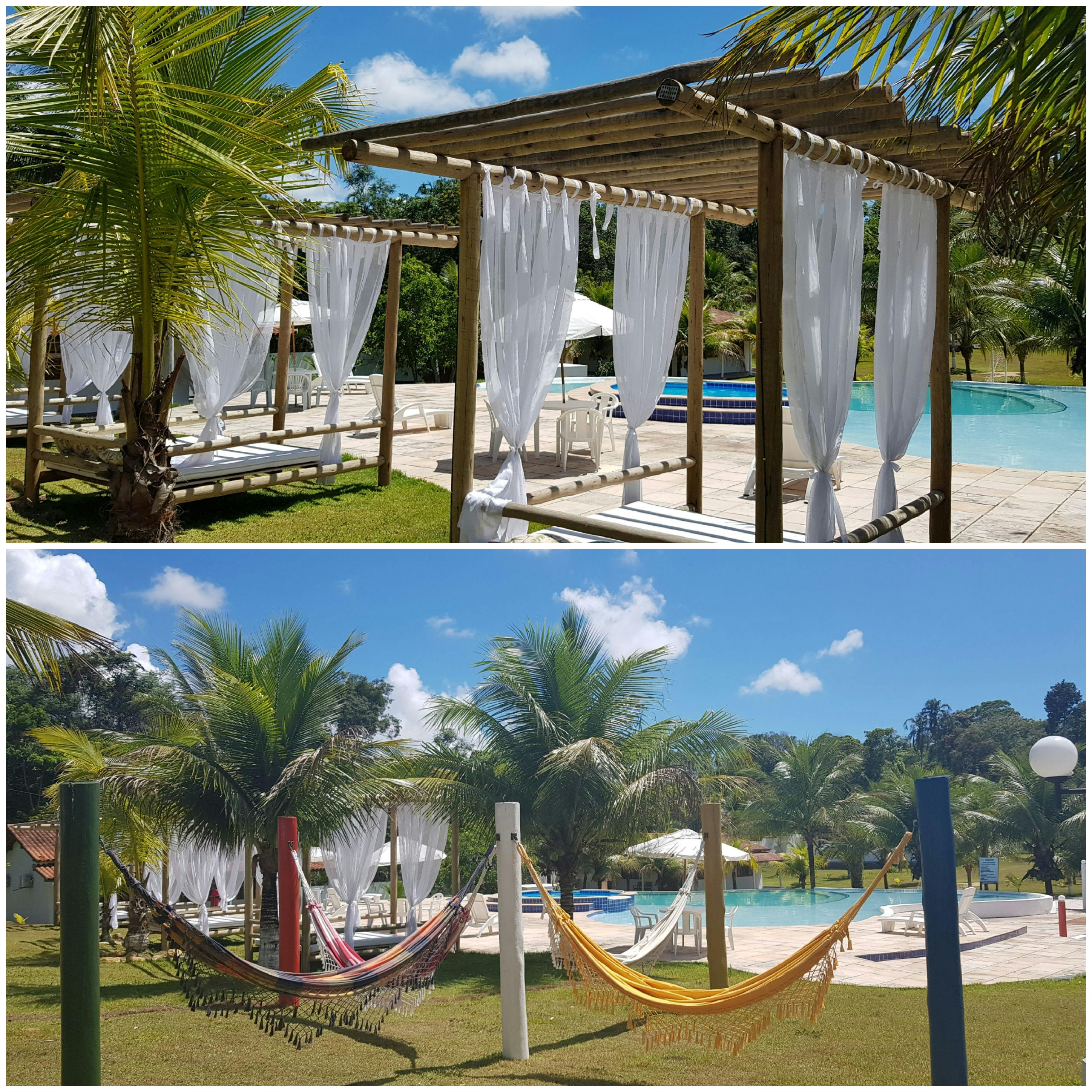 Churrasqueira privativa, varanda com redes, lavanderia com máquina de lavar roupas e chuveiro externo.